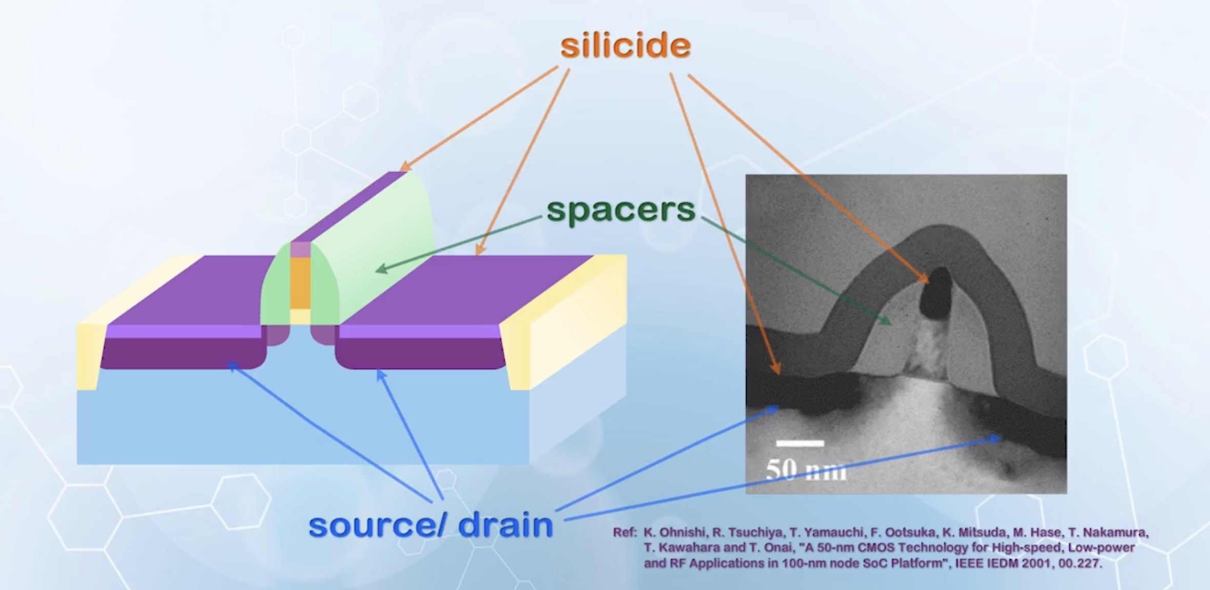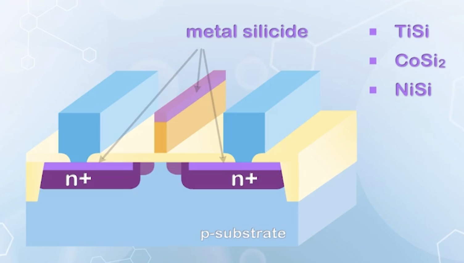 To further reduce the resistance, silicide technology was introduced around 250nm technology node. Silicide is a compound formed between silicon and a metal, usually titanium (