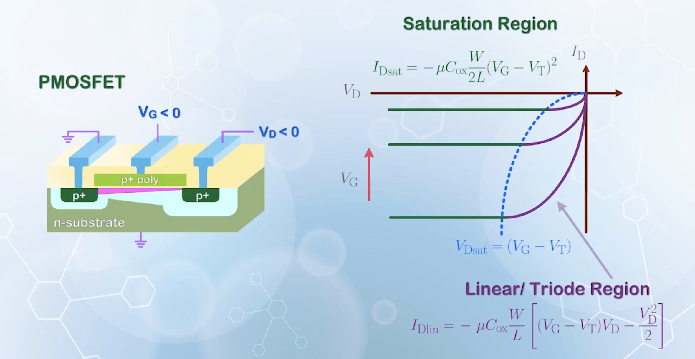 Same applies to PMOSFET, with voltages and currents become negative relative to the source