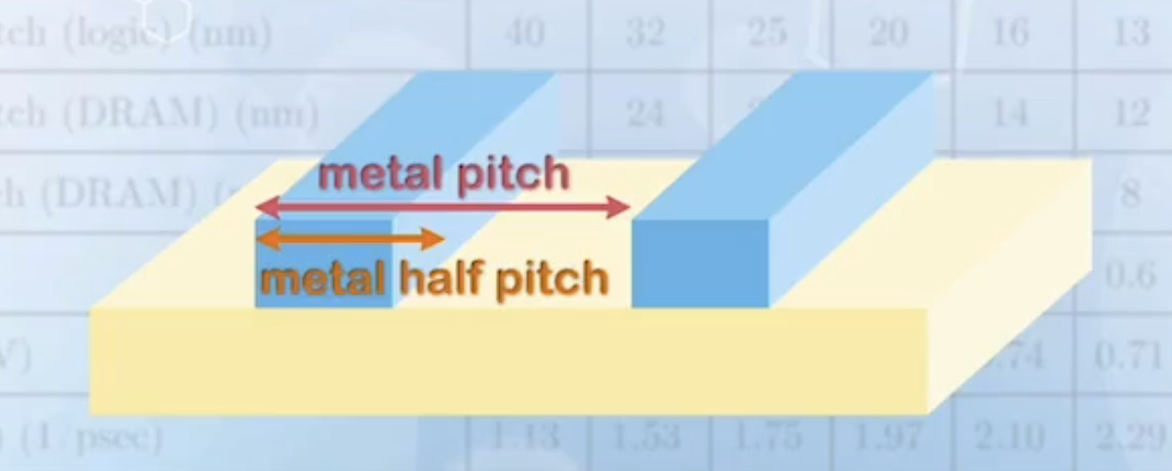 The smallest dimension of the MOSFET is usually the gate length. In some applications with regular patterns, such as memory arrays, the spacing between the MOSFET may be better represented by the metal line spacing, and the technology node may also refer to the metal half pitch (half the distance between two metal lines with minimum line width, separated by the minimum distance).